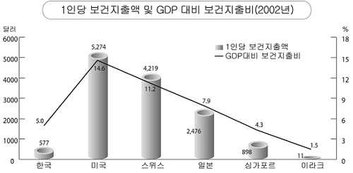 Áö³ 2002³âÀ» ±âÁØÀ¸·Î Á¶»çÇÑ OECD °¢±¹ÀÇ GDP ´ëºñ º¸°ÇÀÇ·áºñ¿¡ °üÇÑ ÀÚ·á¿¡ µû¸£¸é ¿ì¸®³ª¶óÀÇ º¸°ÇÀÇ·áºñ´Â 5.9%·Î, 5.7%ÀÎ ½º·Î¹Ú(Slovak)°øÈ±¹À» Á¦¿ÜÇϰí´Â ÃÖÇÏÀ§±Ç¿¡¼ óÁ® ÀÖ´Â °ÍÀ¸·Î Á¶»çµÆ´Ù°í Çß´Ù.