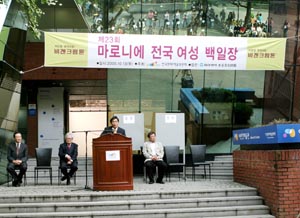 µ¿¾ÆÁ¦¾à°ú ¼ö¼®¹®ÈÀç´ÜÀÌ ÇùÂùÇϰí Çѱ¹¹®¿¹À§¿øÈ¸°¡ ÁÖÃÖÇÑ ¡®Á¦23ȸ ¸¶·Î´Ï¿¡ Àü±¹ ¿©¼º ¹éÀÏÀ塯 ´ëȸ°¡ 10¿ù 13ÀÏ °¡À»Á¤Ãë°¡ ¹°¾À dz°Ü³ª´Â µ¿¼þµ¿ ¸¶·Î´Ï¿¡ °ø¿ø¿¡¼ ¼ºÈ²¸®¿¡ ¸·À» ³»·È´Ù.