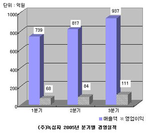 ¢ß³ì½ÊÀÚ(´ëÇ¥ ÇãÀϼ·)´Â 10ÀÏ °ø½Ã¸¦ ÅëÇØ 2005³â 3ºÐ±â±îÁö ´©°è ½ÇÀûÀ¸·Î ¸ÅÃâ¾× 2,494¾ï¿ø, ¿µ¾÷ÀÌÀÍ 263¾ï¿ø, °æ»óÀÌÀÍ 350¾ï¿ø, ´ç±â¼øÀÌÀÍ 226¾ï¿øÀ» ´Þ¼ºÇß´Ù°í ¹àÇû´Ù.