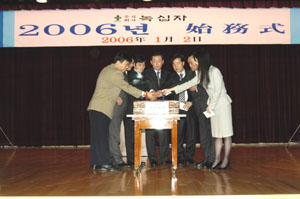 ³ì½ÊÀÚ´Â 1¿ù 2ÀÏ ¿ÀÀü 8½Ã °¢ »ç¾÷À庰·Î 2006³âÀ» ¿©´Â ½Ã¹«½ÄÀ» °®°í, º»°ÝÀûÀÎ »õÇØ ¾÷¹«¸¦ ½ÃÀÛÇß´Ù. º»»ç ½Ã¹«½ÄÀº ¢ß³ì½ÊÀÚ »Ó¸¸ ¾Æ´Ï¶ó GCJBP, °æ³²Á¦¾à, ¸ñ¾Ï»ý¸í°øÇבּ¸¼Ò µî °ü°è»ç ÀÓÁ÷¿ø 500¿©¸íÀÌ Âü¼®ÇÑ °¡¿îµ¥ ¿ëÀÎ ¼öÁö ¸ñ¾Ïºôµù 7Ãþ ´ë°´ç¿¡¼ ½Ç½ÃµÆ´Ù.