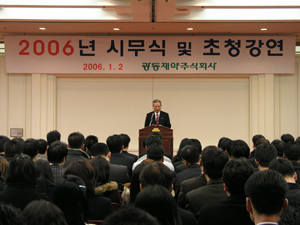±¤µ¿Á¦¾à(ȸÀå ÃÖ¼öºÎ)Àº 1¿ù 2ÀÏ ÄÚ¿¢½º¿¡¼ 250¿©¸íÀÇ Á÷¿øÀÌ Âü¼®ÇÑ °¡¿îµ¥ 2006³âµµ ½Ã¹«½Ä °³ÃÖ¸¦ ÅëÇØ, 2006³âµµ °æ¿µ¸ñÇ¥¿Í Àü·«À» °øÀ¯Çϰí, ¸ñÇ¥´Þ¼ºÀ» ´ÙÁüÇÏ´Â Çà»ç¸¦ °¡Á³´Ù.