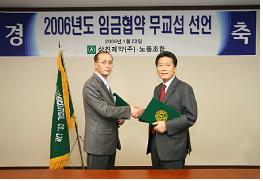 »ïÁøÁ¦¾àÀº Áö³ 23ÀÏ ¿ÀÀü 9½Ã ¼±³µ¿ º»»ç ´ëȸÀǽǿ¡¼ À̼º¿ì ´ëÇ¥ÀÌ»ç ¹× À̸íÀ± ³ëÁ¶À§¿øÀå, ÁÖ¿ä °æ¿µÁø°ú ³ëÁ¶´ëÀÇ¿øµéÀÌ Âü¼®ÇÑ °¡¿îµ¥ 2006³â ÀÓ±Ý ¹«±³¼· ÇÕÀÇ ¼±¾ð ¹× Á¶ÀνÄÀ» °®°í 2006³â ¸ÅÃâ¸ñÇ¥ ´Þ¼ºÀ» À§ÇÑ ±ä¹ÐÇÑ ³ë»çÇù·ÂÀ» °áÀÇÇß´Ù.