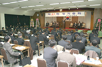 24ÀÏ ¿ÀÈÄ 3½Ã Á¦¾àÇùȸ´Â 4Ãþ °´ç¿¡¼ Á¦61ȸ Á¤±âÃÑȸ¸¦ °³ÃÖÇϰí 2005³âµµ »ç¾÷½ÇÀû ¹× °á»êº¸°í¸¦ ½ÂÀÎÇϰí 2006³âµµ »ç¾÷°èȹ ¹× ¿¹»ê¾ÈÀ» ÃÖÁ¾ È®Á¤Çß´Ù.