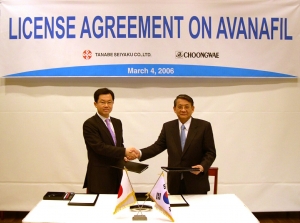Áß¿ÜÁ¦¾à(´ëÇ¥ À̰æÇÏ)ÀÌ Áö³ 4ÀÏ ÀϺ» Ÿ³ªº£»ç(´ëÇ¥ ÇϾ߸¶ ³ªÃ÷Ű)°¡ °³¹ßÇÑ ¹ß±âºÎÀüÄ¡·áÁ¦ÀÎ '¾Æ¹Ù³ªÇÊ(Avanafil)'ÀÇ ±¹³» ¹× ¾Æ½Ã¾Æ Áö¿ª¿¡ ´ëÇÑ ¹Ýµ¶Á¡(Semi-exclusive) °³¹ß¿¡ ´ëÇÑ ¶óÀ̼¾½º °è¾àÀ» ü°áÇÏ°í º»°ÝÀûÀÎ ÀÓ»ó¿¡ µ¹ÀÔÇϱâ·Î Çß´Ù.