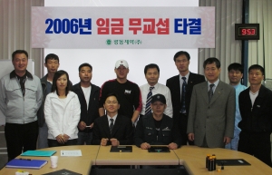 ÀÓ±Ý ±³¼·ÀÌ Å¸°áµÈ ÈÄ ³ë.»ç´Â ȸ»ç ´ëÇ¥ ǰ¸ñÀÎ ºñŸ 500ÀÇ »ý»ê¼º Çâ»óÀ» À§ÇÑ ³ë.»ç °øµ¿¼±¾ð¹®¿¡ ¼¸íÇÏ°í ¾ÕÀ¸·Î ½Å ³ë.»ç¹®È Á¤Âø¿¡ ÇÔ²² ÇÒ °ÍÀ» ¾à¼ÓÇÏ¸é¼ 2006³âµµ Àӱݱ³¼·À» ¸¶¹«¸® Çß´Ù.
