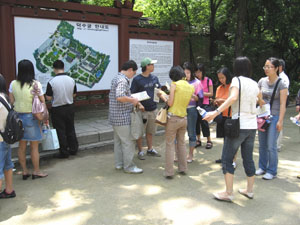 À̳¯ ȸ¿øµé°ú Çѱ¹¾á¼¾ Á÷¿øµéÀº ´ö¼ö±ÃÀ» ã¾Æ ¼ö¹®Àå ±³´ë½ÄÀ» °ü¶÷Çϸç Çѱ¹¹®ÈÀÇ ¾Æ¸§´Ù¿òÀ» µÇ»õ°å´Ù. ¶Ç ´ö¼ö±Ã °æ³»¸¦ µ¹¸ç Á¶¼±¸»±â ¿ª»ç µî¿¡ ´ëÇÑ ¼³¸íÀ» µé¾ú´Ù.