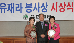 À¯ÇÑÀç´Ü(ÀÌ»çÀå ÇѹèÈ£)Àº Áö³ 19ÀÏ À¯ÇѾçÇà ´ëȸÀǽǿ¡¼ Á¦15ȸ À¯Àç¶óºÀ»ç»ó ¼ö»óÀÚ·Î ¼±Á¤µÈ À̱¤Èñ(52¼¼, °¡ÆòÃʵîÇб³ ±³»ç)¾¾ ¿Í ÀÌÁ¤ÀÚ(60¼¼, Ãæ³² º¸·É½Ã ¿Àõ¸é È£µµº¸°ÇÁø·á¼ÒÀå) ¾¾¿¡ ´ëÇÑ ½Ã»ó½ÄÀ» °¡Á³´Ù.