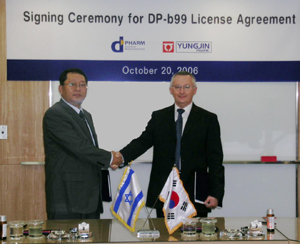 ¿µÁø¾àǰÀº À̽º¶ó¿¤ ½Å¾à ¿¬±¸°³¹ß Àü¹®È¸»çÀÎ D-Pharm¿¡¼ °³¹ßÇÏ´Â ³úÁ¹Áß Ä¡·á ½Å¾à (Á¦Ç°¸í ¹ÌÁ¤, ÄÚµå¸í DP- b99)ÀÇ ±¹³» µ¶Á¡ ÆÇ¸Å±ÇÇÑ¿¡ ´ëÇÑ °è¾à½ÄÀ» ¸Î¾ú´Ù°í 10¿ù 20ÀÏ ¹àÇû´Ù.