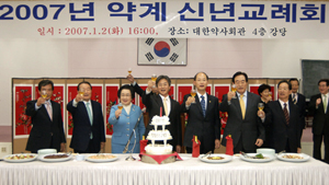 ¾à¾÷°è 4´Üü°¡ °øµ¿ ÁÖÃÖÇÏ´Â 2007³â ¾à°è ½Å³â±³·Êȸ°¡ 2ÀÏ ¿ÀÈÄ 4½Ã ´ëÇѾà»çȸ °´ç¿¡¼ ¾à¾÷°è ÀÎ»ç ¾à 300¿©¸íÀÌ Âü¼®ÇÑ °¡¿îµ¥ °³ÃֵƴÙ.