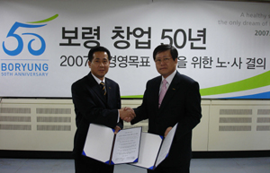º¸·ÉÁ¦¾à(´ëÇ¥ ±è»ó¸°)Àº 3ÀÏ °æ±âµµ ¾È»ê½Ã¿¡ À§Ä¡ÇÑ º¸·ÉÁ¦¾à ¾È»ê°øÀå¿¡¼ ±è»ó¸° ´ëÇ¥ÀÌ»ç¿Í À庴¼· ³ëÁ¶À§¿øÀå µî ÀÓÁ÷¿ø°ú ³ëµ¿Á¶ÇÕ¿øµéÀÌ Âü¼®ÇÑ °¡¿îµ¥ ¡®2007³â °æ¿µ¸ñÇ¥ ´Þ¼ºÀ» À§ÇÑ ³ë»ç °áÀÇ´ëȸ¡¯¸¦ °®°í ºÐÀï ¾ø´Â ³ë»çÈÇÕÀ» ´ÙÁüÇß´Ù.