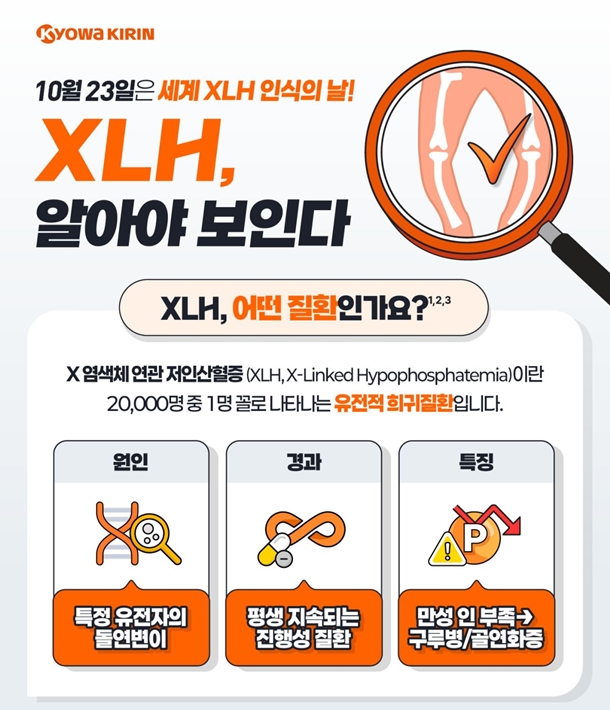 Çѱ¹Äì¿Í±â¸°Àº ¡®¼¼°è XLH ÀνÄÀÇ ³¯¡¯À» ¸Â¾Æ Èñ±ÍÁúȯ X ¿°»öü ¿¬°ü ÀúÀλêÇ÷Áõ(X-Linked Hypophosphatemia, ÀÌÇÏ XLH)¿¡ ´ëÇÑ Áúȯ ÀÎ½Ä ÁõÁø°ú Á¶±â Áø´Ü ¹× Ä¡·áÀÇ Á߿伺À» ¾Ë¸®±â À§ÇÑ ÀÎÆ÷±×·¡ÇÈÀ» 23ÀÏ °ø°³Çß´Ù.