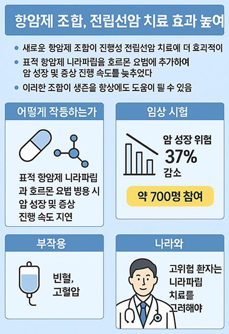 À̹ø ÀÓ»ó¿¡¼´Â Ç¥ÁØ Ä¡·áÁ¦ÀÎ ¾Æºñ¶óÅ×·Ð ¾Æ¼¼Å×ÀÌÆ®(Abiraterone Acetate, »óǰ¸í Zytiga) ¿Í ÇÁ·¹µå´Ï¼Õ(Prednisone) ¿¡ ´Ï¶óÆÄ¸³À» Ãß°¡Çß´Ù.