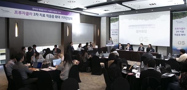 Çѱ¹´ÙÄÉ´ÙÁ¦¾àÀÌ 27ÀÏ ´õ ÇöóÀÚ È£ÅÚ ¼¿ï¿¡¼ ÀÚ»çÀÇ ÀüÀ̼º ´ëÀå¾Ï Ä¡·áÁ¦ 'ÇÁ·çÀÚŬ¶ó(¼ººÐ¸í: ÇÁ·çÄýƼ´Õ)'ÀÇ 3Â÷ Ä¡·á ÀûÀÀÁõ È®´ë¸¦ ±â³äÇÏ´Â ±âÀÚ°£´ãȸ¸¦ °³ÃÖÇß´Ù.