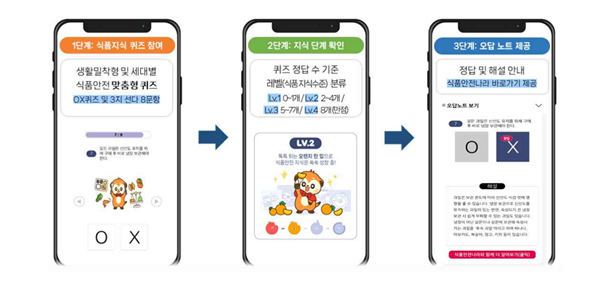 ¡®ÇÑÀÔ ÄûÁ´Â ¡®ÇÑÀÔ º£¾î ¸Ôµí ½±°í Àç¹Õ°Ô Áö½ÄÀ» ¹è¿ì´Â ÄûÁ¶ó´Â Àǹ̷Π¼ÒºñÀÚ¿Í ½Äǰ °ü·Ã ¿µ¾÷ÀÚ°¡ OXÇü°ú °´°ü½ÄÀ¸·Î ±¸¼ºµÈ ÄûÁ Ç®¸é¼ ½Äǰ ¾ÈÀü Á¤º¸¸¦ ÀÌÇØÇÏ°í ½Ç»ýȰ¿¡¼ Ȱ¿ëÇÏ´Â µ¥ µµ¿òÀ» ÁÖ´Â ¼ºñ½º·Î, ±âÁ¸¿¡ ¡®½ÄǰÁö½Ä ´É·Â°í»ç¡¯·Î ¿î¿µµÇ´ø ÄûÁî ¼ºñ½º¸¦ °³ÆíÇÏ¿© Á¦°øÇÏ´Â °ÍÀÌ´Ù.