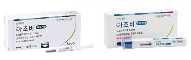 ¾ÆÁ¶ºñ´Â Ä®½ÃÅä´Ñ À¯ÀüÀÚ °ü·Ã ÆéŸÀ̵å(calcitonin gene-related peptide, CGRP) ¸®°£µå¿¡ °áÇÕÇØ ¼ö¿ëü¿ÍÀÇ »óÈ£ÀÛ¿ëÀ» Â÷´ÜÇÏ´Â Àΰ£È ´ÜÀÏŬ·Ð Ç×ü´Ù.1) ±¹³»¿¡¼ ÆíµÎÅë ¿¹¹æ ÀûÀÀÁõÀ¸·Î Çã°¡µÈ Ç× CGRP ´ÜÀÏŬ·ÐÇ×ü Á¦Á¦ Áß À¯ÀÏÇÏ°Ô ºÐ±â 1ȸ Åõ¿©°¡ °¡´ÉÇÑ Á¦Á¦·Î 2021³â 7¿ù ½ÄǰÀǾàǰ¾ÈÀüóÀÇ Çã°¡¸¦ ȹµæÇß´Ù.