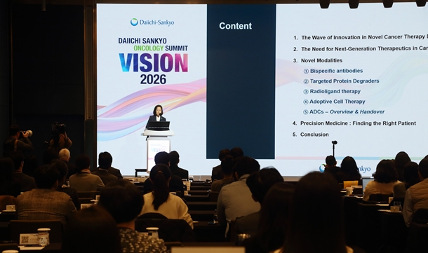 ¡®¿ÂÄÝ·ÎÁö ºñÀü ¼¹Ô¡¯Àº Çѱ¹´ÙÀÌÀÌÂî»êÄì°¡ Ç×¾Ï Àü¹® ±â¾÷À¸·Î¼ÀÇ ¿¬±¸ ¿ª·®°ú ±Û·Î¹ú °³¹ß °æÇèÀ» ¹ÙÅÁÀ¸·Î, ±¹³»¿Ü Á¾¾çÇÐ Àü¹®°¡µé°ú Ç×¾Ï Ä¡·áÀÇ ¹Ì·¡¸¦ ³íÀÇÇϱâ À§ÇØ Ã³À½À¸·Î ¸¶·ÃÇÑ Çмú ±³·ùÀÇ ÀåÀÌ´Ù. ´ÙÀÌÀÌÂî»êÄì´Â ADC ½Å¾à ¿£ÇãÅõ¢ç(¼ººÐ¸í Æ®¶ó½ºÅõÁÖ¸¿µ¥·è½ºÅ×Ä)¸¦ ź»ý½ÃŲ ±Û·Î¹ú Ç×¾Ï ºÐ¾ß ¼±µµ ±â¾÷À¸·Î, µ¶ÀÚÀûÀÎ DXd(µ¥·è½ºÅ×Ä)-ADC Ç÷§ÆûÀ» ±â¹ÝÀ¸·Î ´Ù¾çÇÑ ¾ÏÁ¾¿¡¼ »õ·Î¿î Ä¡·á °¡´É¼ºÀ» Áö¼ÓÀûÀ¸·Î ¸ð»öÇϰí ÀÖ´Ù.