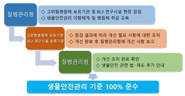 Áúº´°ü¸®Ã»Àº °íÀ§Ç躴¿øÃ¼ º¸À¯±â°ü ¹× BL3 ¿¬±¸½Ã¼³¿¡ ´ëÇØ º´¿øÃ¼ »ç¿ë ³»¿ª µî °ü¸® ±â·Ï, ¹°¸®Àû º¸¾È(CCTV µî) »çÇ×, »ý¹°¾ÈÀü Àåºñ °ü¸® µî¿¡ ´ëÇÑ ÇöÀåÁ¡°ËÀ» ½Ç½ÃÇÏ¿© »ý¹°¾ÈÀü°ü¸® ±âÁØÀ» 100% ÁؼöÇÔÀ» È®ÀÎÇÏ¿´´Ù.