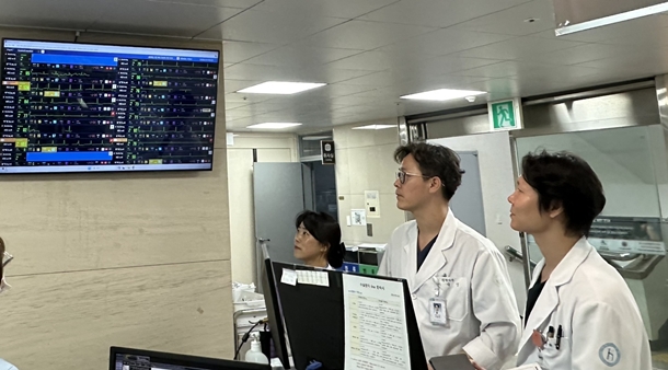¡ã ±¤ÁÖÇѱ¹º´¿ø ÀÇ·áÁøµéÀÌ º´µ¿¿¡ ¼³Ä¡µÈ ¾ÅÅ©(thynC) ¸ð´ÏÅ͸¦ ÅëÇØ ȯÀÚ »óŸ¦ È®ÀÎÇϰí ÀÖ´Ù.