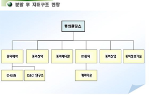 ÁöÁÖȸ»ç ÀüȯÀÛ¾÷ÀÌ ¿Ï·áµÉ °æ¿ì, Áß¿ÜȦµù½º(°¡Äª)´Â Áß¿ÜÁ¦¾à, (ÁÖ)Áß¿Ü, Á߿ܽžà, Á߿ܸ޵ðÄ®, Á߿ܻê¾÷, Áß¿ÜÁ¤º¸±â¼ú µî 6°³ ÀÚȸ»ç¸¦ °Å´À¸° »ç¾÷ÁöÁÖȸ»ç°¡ µÈ´Ù.