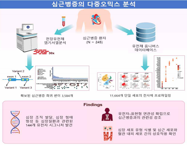 ¶ÇÇÑ, °ø°³µÈ ´ÜÀϼ¼Æ÷ÀÇ Àü»çü µ¥ÀÌÅ͸¦ Ȱ¿ëÇØ ÃÑ 11,664°³ÀÇ ½ÉÀå¼¼Æ÷¸¦ ºÐ¼®Çß´Ù. ±× °á°ú, ±âÁ¸ÀÇ ½É±Ùº´ÁõÀÇ ÁÖ¿ä ¿øÀÎ ¼¼Æ÷·Î ¾Ë·ÁÁø ½É±Ù¼¼Æ÷»Ó¸¸ ¾Æ´Ï¶ó ½ÉÀå³»ÇǼ¼Æ÷(Endothelial cell) ¿¡¼µµ À¯ÀüÀÚ ¹ßÇöÀÌ ³ô°Ô ³ªÅ¸³µÀ¸¸ç, µÎ ¼¼Æ÷ À¯Çü °£ À¯ÀÇÇÑ »óÈ£ÀÛ¿ëÀÌ Á¸ÀçÇÔÀ» È®ÀÎÇÏ¿´´Ù. ÀÌ´Â ½É±Ùº´ÁõÀÌ Æ¯Á¤ ¼¼Æ÷ ÇϳªÀÇ ¹®Á¦°¡ ¾Æ´Ï¶ó, ¿©·¯ ¼¼Æ÷ °£ »óÈ£ÀÛ¿ë ÀÌ»óÀ¸·Î ¹ß»ýÇÒ ¼ö ÀÖÀ½À» ÀǹÌÇÑ´Ù.