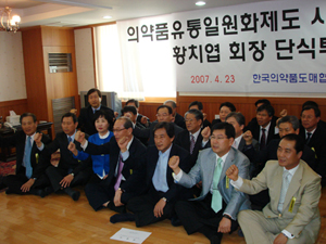 Çѱ¹ÀǾàǰµµ¸ÅÇùȸ Ȳġ¿± ȸÀåÀÌ 'ÀǾàǰ À¯ÅëÀÏ¿øÈÁ¦µµ »ç¼ö' ¸¦ ¼±¾ðÇÏ¸é¼ ¹«±âÇÑ ´Ü½ÄÅõÀï¿¡ µé¾î°¬´Ù.