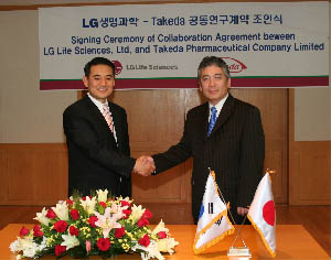 ¶ÇÇÑ "À̹ø °è¾àÀº ¼¼°èÀûÀÎ Á¦¾à»çÀÎ ´ÙÄÉ´ÙÞä°¡ LG»ý¸í°úÇÐÀÇ ½Å¾àÈĺ¸ ¹ß±¼´É·ÂÀ» ÀÎÁ¤ÇÑ °á°ú·Î¼, Áö¼ÓÀûÀÎ ¿¬±¸¸¦ ÅëÇØ ÇöÀç È®º¸ÇÑ ¹°Áúº¸´Ù ´õ È¿´É ¹× ¾ÈÁ¤¼ºÀÌ ¿ì¼öÇÑ ½Å¹°ÁúÀ» °è¼Ó ¹ß±¼ÇÒ °èȹÀÌ´Ù"°í ±Ý¹ø °øµ¿¿¬±¸ ÃßÁøÀÇ Àǹ̸¦ ¹àÇû´Ù.