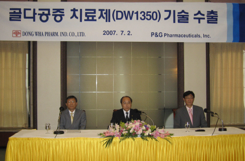 2ÀÏ, µ¿È¾àǰ(´ëÇ¥ À±±æÁØ)Àº ÇÁ·¹½º¼¾ÅÍ¿¡¼ ¹Ì±¹ P&GÀÇ ÀÚȸ»çÀÎ P&GP¿Í °ñ´Ù°øÁõ Ä¡·áÁ¦ÀÎ ¡®DW1350¡¯ ¹× ±× Èļӹ°ÁúÀÇ ¶óÀ̼¾½Ì °è¾à ü°á¿¡ ´ëÇÑ ±âÀÚȸ°ßÀ» °®°í ÀÌ °°Àº »ç½ÇÀ» ¹ßÇ¥Çß´Ù.