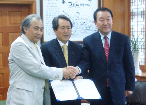 <»çÁø= 9ÀÏ ¿ÀÈÄ Á¦ÁÖµµÃ»¿¡¼ ¢ß¿£ÄÉÀ̹ÙÀÌ¿À ÀåÁؽÄ(¿À¸¥ÂÊ) ´ëÇ¥°¡ ÀϺ»ÀÇ ¾ÏÀü¹® Ä¡·áº´¿øÀÎ 'ÀÇÁøÈ¸'ÀÇ ¿À´Ù ÇÏ·ç³ë¸®(á³ï£ ö½Ûô. ¿ÞÂÊ) ÀÌ»çÀå°ú ÇÔ²² ±èÅÂȯ Á¦ÁÖÁö»ç(°¡¿îµ¥)¿Í 'Á¦ÁÖ¸ÞµðÄø®Á¶Æ®¼¾ÅÍ' ¼³¸³¿¡ ´ëÇÑ ¾çÇØ°¢¼(MOU)¸¦ ü°áÇß´Ù.>