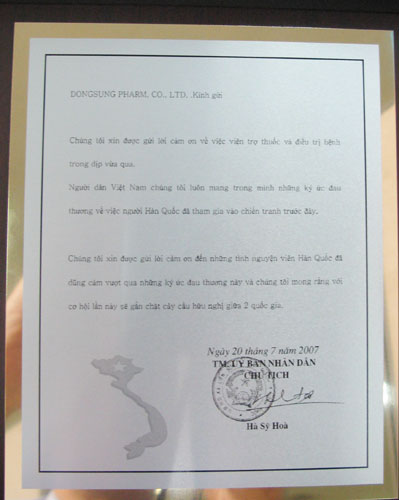 ÀÌ¿¡ º£Æ®³² ºóÆø¼º ÀûÇÕ±º ÇÏÁö¿À¸® ÀιÎÀ§¿øÀåÀ¸·ÎºÎÅÍ °¨»çÀÇ ÆíÁö¿Í »óÆÐ¸¦ ¹Þ¾Ò´Ù.