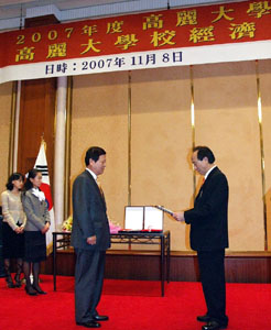 Àϵ¿Á¦¾à ÀÌÁ¤Ä¡ ´ëÇ¥ÀÌ»ç »çÀåÀÌ Áö³ 8ÀÏ, °í·Á´ëÇб³ °æÁ¦ÀÎȸ(ȸÀå ±è¸íÇÏ)ÀÇ 2007³â ¼Û³âÀÇ ¹ã Çà»ç¿¡¼ ¡®°í·Á´ëÇб³ °æÁ¦Àδë»ó¡¯À» ¼ö»óÇß´Ù.