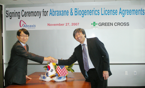 ¢ß³ì½ÊÀÚ´Â Áö³ 27ÀÏ(¹Ì±¹ ÇöÁö½Ã°£) Ú¸ ͏®Æ÷´Ï¾ÆÁÖ ·Î½º¾ØÁ©·¹½º½Ã¿¡ ¼ÒÀçÇÑ ¾Æºê¶ô½Ã½º ¹ÙÀÌ¿À»çÀ̾ð½ºÞä(ABL»ç) º»»ç¿¡¼ ÇãÀϼ· ³ì½ÊÀÚ ºÎȸÀå°ú ABL»ç CEOÀÎ Dr. Patrick Soon-ShiongÀÌ Âü¼®ÇÑ °¡¿îµ¥ ³ì½ÊÀÚ°¡ °³¹ßÁßÀÎ ÀçÁ¶ÇÕ Ç÷¾×ÀÀ°í 8ÀÎÀÚ Á¦Á¦ µî ¹ÙÀÌ¿À ÀǾàǰ 5°³ ǰ¸ñ¿¡ ´ëÇÑ ºÏ¹Ì Áö¿ª Á¦Ç° °³¹ß ¹× µ¶Á¡ ÆÇ¸Å±Ç°ú Â÷¼¼´ë Ç×¾ÏÁ¦ ¡®¾Æºê¶ô»ê¡¯(ABRAXANE)ÀÇ ±¹³» µ¶Á¡ °ø±Þ °è¾àÀ» À§ÇÑ °è¾àÀ» ±³Â÷ ¶óÀ̼¾½º Çü½ÄÀ¸·Î ü°áÇß´Ù.
