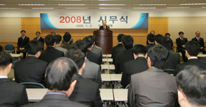 À¯ÇѾçÇà(»çÀå Â÷Áß±Ù)Àº 1¿ù 2ÀÏ º»»ç ´ë¿¬¼ö½Ç¿¡¼ Àü ÀÓÁ÷¿øÀÌ Âü¼®ÇÑ °¡¿îµ¥ 2008³âµµ ½Ã¹«½ÄÀ» °®°í ¡®¿Á¤ 2008, âÁ¶¿Í Ã¥ÀÓ¡¯À̶ó´Â °æ¿µ½½·Î°Ç ¾Æ·¡ Á¦86±â »ç¾÷±âÀÇ ÈûÂù »õÃâ¹ßÀ» ´ÙÁüÇß´Ù.