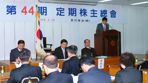 11¿ù °á»ê¹ýÀÎÀÎ Çö´ë¾àǰÀº 12ÀÏ 10½Ã ¼¿ï °¼±¸ Ȱ ¼¿ï»ç¹«¼Ò¿¡¼ Á¦44±â Á¤±â ÁÖÁÖÃÑȸ¸¦ °®°í À̰°ÀÌ Á¤°üÀ» º¯°æÇÏ´Â ÇÑÆí Áö³ÇØ¿Í °°Àº Çö±Ý 15% ¹è´ç(ÁÖ´ç 750¿ø)À» ÀǰáÇß´Ù.