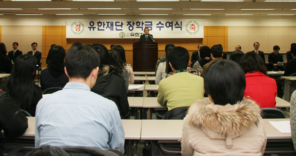 Áö³ 2¿ù 21ÀÏ ¿ÀÀü ´ë¹æµ¿ À¯ÇѾçÇà º»»ç ´ë°´ç¿¡¼ Â÷Áß±Ù À¯ÇѾçÇà »çÀå µî À¯ÇÑÀç´Ü °ü°èÀÚ¿Í ÀåÇÐ±Ý ¼öÇýÀÚµéÀÌ Âü¼®ÇÑ °¡¿îµ¥ 2008³â ¡®À¯ÇÑÀç´Ü ÀåÇÐ±Ý ¼ö¿©½Ä¡¯¿¡¼ ÇѹèÈ£ ÀÌ»çÀåÀº °¿ø´ëÇб³ ±èÀçÇö ±º µî 68¸íÀÇ ´ëÇлý¿¡°Ô 1Çб⠵î·Ï±ÝÀÎ 3¾ï 1õ¸¸¿øÀ» ÀåÇбÝÀ¸·Î ¼ö¿©Çß´Ù.