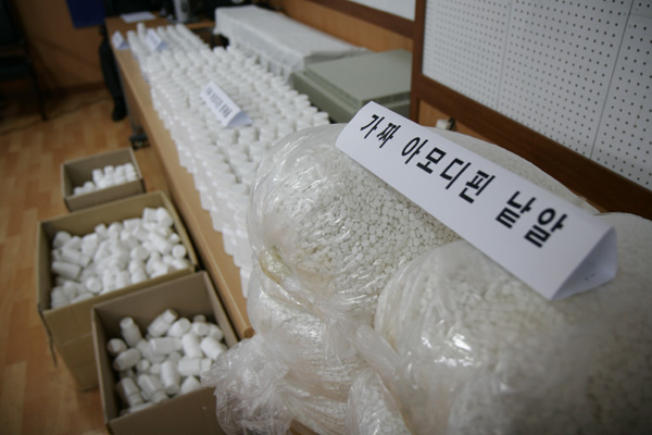 Çѹ̾àǰÀÇ °íÇ÷¾Ð¾àÀÎ ¡®¾Æ¸ðµðÇÉ¡¯À» ½Äº°ÀÌ °ÅÀÇ ºÒ°¡´ÉÇÒ Á¤µµ·Î º¹»çÇÑ °¡Â¥¾àÀ» Á¦Á¶ÇÏ¿© À¯Åë½ÃŰ·ÁÇÑ Á¦¾àȸ»ç Á÷¿øµéÀÌ ¼¿ï ±¤Áø°æÂû¼¿¡ ÀÇÇØ Àû¹ßµÈ °ÍÀº Çѹ̾àǰÀÌ ±íÀÌ °ü¿©Çß´ø °ÍÀ¸·Î ¾Ë·ÁÁ³´Ù.