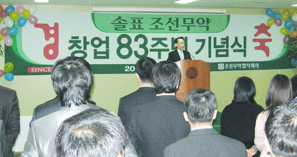 ±¹³» ´ëÇ¥Àû Àå¼ö Á¦¾à¾÷üÀÎ ¼ÖÇ¥ Á¶¼±¹«¾à(´ëÇ¥ ¹Ú´ë±Ô)ÀÌ Áö³ 14ÀÏ Ã¢¸³ 83ÁÖ³âÀ» ¸Â¾Æ º»»ç °´ç¿¡¼ Àü ÀÓÁ÷¿øÀÌ Âü¼®ÇÑ °¡¿îµ¥ ±â³äÇà»ç¸¦ °¡Á³´Ù.