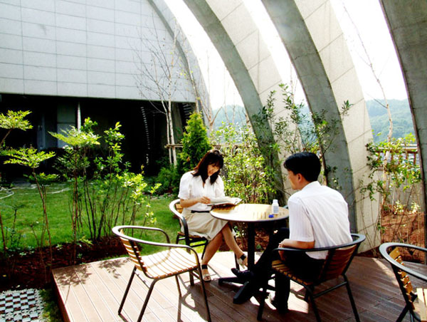 ´Ù¼Ò ´ä´äÇÒ ¼ö ÀÖ´Â µµ½É ¼Ó »ç¹«½Ç¿¡µµ, Á÷¿øµéÀÌ Àá½Ã³ª¸¶ ÀÚ¿¬À» ´À³¥ ¼ö ÀÖ´Â °ø°£À» ¸¶·ÃÇÔÀ¸·Î½á, ÈÞ½ÄÀ» ÅëÇØ ¾÷¹« ÇǷθ¦ Ç®°í ´ã¼Ò¸¦ ÅëÇØ Á÷¿øµéÀÇ ÈÇÕÀ» µµ¸ðÇÒ ¼ö ÀÖÀ» °ÍÀ¸·Î ±â´ëÇϰí ÀÖ´Ù.