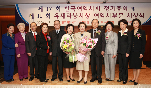 ¡®À¯Àç¶óºÀ»ç»ó¡¯ Àº À¯ÇѾçÇà â¾÷ÀÚÀΠͺ À¯ÀÏÇÑ ¹Ú»çÀÇ Àå³àÀÎ À¯Àç¶ó ¿©»çÀÇ »çȸ°øÇå Á¤½ÅÀ» ±â¸®±â À§ÇØ Áö³ 1992³â Á¦Á¤µÈ ½Ã»óÁ¦µµ·Î ¿ÃÇØ·Î 11ȸ¸¦ ¸Â°í ÀÖÀ¸¸ç ¡®¿©¾à»çºÎ¹®¡¯Àº ±¹¹ÎºÀ»ç¿¡ Çå½ÅÀûÀ¸·Î ºÀ»çÇÏ´Â ¿©¾à»çßÚ Á¤¸³À» À§ÇØ Çѱ¹¿©¾à»çȸ(ȸÀå °í¹ÌÁö)¿Í ÇÔ²² Á¦Á¤ÇÏ¿© À̹ø¿¡ 11¹øÂ° ¼ö»óÀÚ¸¦ ¹èÃâÇÏ°Ô µÇ¾ú´Ù.