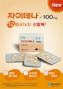 µ¿¾ÆÁ¦¾àÀÌ ±¹³» ÃÖÃÊ·Î, ¼¼°è ³× ¹øÂ°·Î °³¹ß¿¡ ¼º°øÇØ ½ÃÆÇ ÁßÀÎ ¹ß±âºÎÀüÄ¡·áÁ¦ ¡®ÀÚÀ̵¥³ª¡¯ÀÇ 100mg 12Á¤(4Á¤¡¿3) Æ÷ÀåÀ» »õ·Ó°Ô ¹ß¸ÅÇß´Ù.