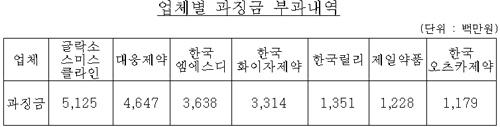 °øÁ¤°Å·¡À§¿øÈ¸´Â 14ÀÏ ´Ù±¹Àû Á¦¾à»ç 5°³»ç, ±¹³» Á¦¾à»ç 2°³ µî 7°³ Á¦¾àȸ»çÀÇ ºÎ´ç°í°´À¯ÀÎÇàÀ§, ÀçÆÇ¸Å°¡°ÝÀ¯ÁöÇàÀ§ ¹× »ç¾÷Ȱµ¿¹æÇØÇàÀ§ µî¿¡ ´ëÇØ ½ÃÁ¤¸í·É ¹× °ú¡±Ý ÃÑ 204¾ï¿øÀ» ºÎ°úÇϱâ·Î Çß´Ù.