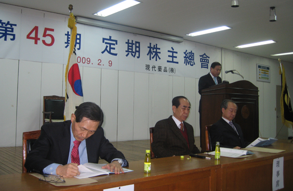 Çö´ë¾àǰÀº 9ÀÏ ¿ÀÀü 10½Ã º»»ç °´ç¿¡¼ Á¦45±â Á¤±âÁÖÁÖÃÑȸ¸¦ ¿°í Àӱ⠸¸·áµÈ À±Ã¢Çö ´ëÇ¥À̻縦 ÀÓ±â 3³âÀÇ ´ëÇ¥ÀÌ»ç·Î Àç¼±ÀÓÇÏ´Â ÇÑÆí ÁÖ´ç 13%¸¦ ¹è´çÀ» °áÀÇÇß´Ù.