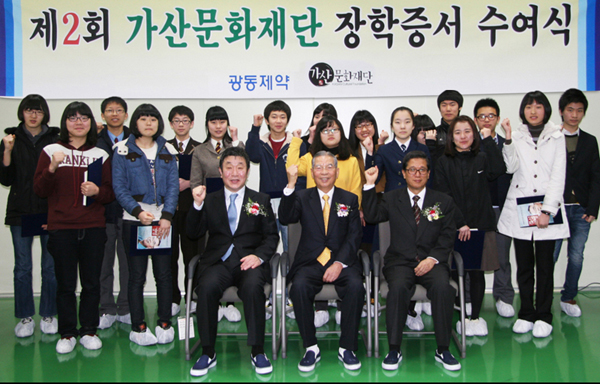 ±¤µ¿Á¦¾à ¡®°¡»ê¹®ÈÀç´Ü¡¯Àº °æ±âµµ ¼Ûź°øÀå°ú °æºÏ ±èõ½Ã±³À°Ã»¿¡¼ 2009³âµµ Á¦2ȸ ÀåÇÐÁõ¼ ¼ö¿©½ÄÀ» °¡Áö°í °æ±âµµ ÆòÅðú °æºÏ ±èõÁö¿ª Áß°íµî ÇлýÀ» ´ë»óÀ¸·Î ÀåÇлý Ãßõ¼¸¦ ÃëÇÕÇÏ¿© ÁßÇлý 17¸í°ú °íµîÇлý 16¸íÀ» ¼±Á¤, ÃÑ 33¸í¿¡°Ô 1³â°£ ¼ö¾÷·á¿Í ¼±¹°À» ¼ö¿© ÇÏ¿´´Ù.