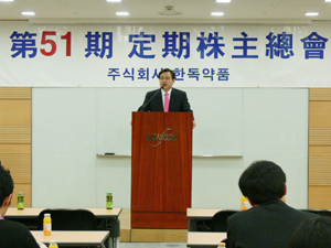 Çѵ¶¾àǰ(´ëÇ¥ÀÌ»ç ±è¿µÁø)Àº Áö³ 13ÀÏ º»»ç¿¡¼ Á¦ 51±â ÁÖÁÖÃÑȸ¸¦ °³ÃÖÇÏ°í ±èöÁØ ºÎ»çÀåÀ» ½ÅÀÓ ´ëÇ¥ÀÌ»ç·Î ¼±ÀÓÇß´Ù.