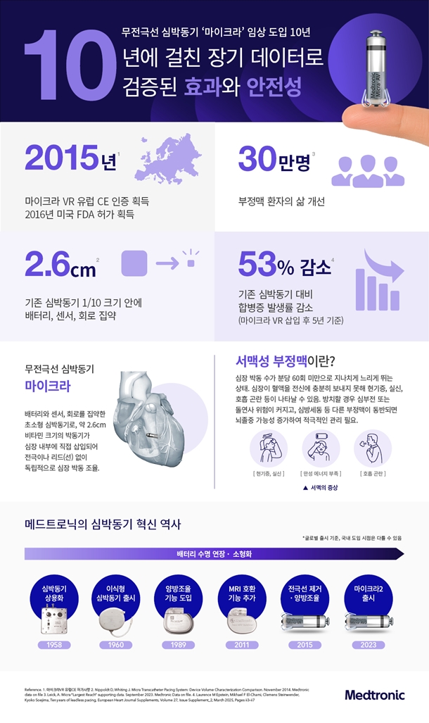 À¯·´½ÉÀåÇÐȸÁö(European Heart Journal)´Â 2025³â ƯÁýÈ£ ¡®¹«Àü±Ø¼± ½É¹Úµ¿±â 10³âÀÇ ¿©Á¤(10 Years of Leadless Pacing)¡¯À» ¹ß°£Çϸç Áö³ 10³âÀ» ¡°½É¹Úµ¿±â ±â¼ú Çõ½ÅÀÇ ½Ã´ë(Revolution in pacemaker technology)¡±·Î ±ÔÁ¤Çß´Ù. ¹«Àü±Ø¼± ½É¹Úµ¿±âÀÇ ÁøÈ °úÁ¤°ú Àû¿ë ºÐ¾ß, ½Ã¼ú ÈÄ °ü¸®, ÀþÀº ȯÀÚ·ÎÀÇ Àû¿ë È®´ë Æ®·»µå µîÀ» ´Ù·ç´Â 7°³ÀÇ ³í¹®À¸·Î ±¸¼ºµÈ ƯÁýÈ£¿¡¼´Â ¸¶ÀÌÅ©¶óÀÇ ÀÓ»óÀÌ °¡Àå Ȱ¹ßÇÏ°Ô ¾ð±ÞµÇ¾úÀ¸¸ç, ±×Áß¿¡¼µµ Àå±â ÃßÀû µ¥ÀÌÅÍ·Î ¸¶ÀÌÅ©¶óÀÇ ¾ÈÀü¼º°ú È¿°ú¸¦ ÀÔÁõÇÑ ¿¬±¸°¡ ÁÖ¸¦ ÀÌ·ç¾î ºÐ¾ß¸¦ ¼±µµÇÏ´Â ÁöÀ§¸¦ È®ÀνÃÄ×´Ù.