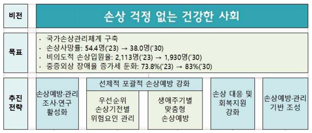 ¡®¼Õ»ó °ÆÁ¤ ¾ø´Â °Ç°ÇÑ »çȸ¡¯¶ó´Â ºñÀü ¾Æ·¡ ¼Õ»ó»ç¸Á·ü °¨¼Ò, ºñÀǵµÀû ¼Õ»óÀÔ¿øÀ² °¨¼Ò µîÀ» ¸ñÇ¥·Î 5´ë ÃßÁøÀü·« ¹× 16°³ ÃßÁø°úÁ¦·Î ±¸¼ºÇß´Ù.