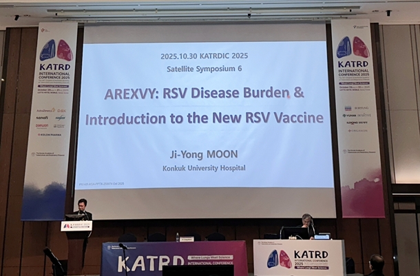 ¸ÕÀú, Áö³ 30ÀÏ ¿¸° ¡®¾Æ·º½ººñ »õƲ¶óÀÌÆ® ½ÉÆ÷Áö¾ö¡¯¿¡¼ ¹®Áö¿ë ±³¼ö´Â ¡®¼ºÀο¡¼ÀÇ RSV Áúº´ ºÎ´ã ¹× RSV ¹é½Å, ¾Æ·º½ººñ¡¯¸¦ ÁÖÁ¦·Î ¹ßÇ¥¸¦ ÁøÇàÇß´Ù. ¹® ±³¼ö´Â ¹Ì±¹ °¨¿°ÇÐȸÁö(The Journal of Infectious Disease)¿¡ °ÔÀçµÈ ³í¹®À» ÀοëÇϸç, COPD µî ±âÀú ÁúȯÀ» °¡Áø 60¼¼ ÀÌ»ó ¼ºÀÎ ÀÔ¿øÈ¯ÀÚ¿¡¼ RSV °¨¿°ÀÌ Áúȯ ¾ÇÈ ¹× Æó ±â´É ÀúÇϸ¦ ÃÊ·¡ÇÒ ¼ö ÀÖ´Ù´Â ¿¬±¸ °á°ú¸¦ °øÀ¯Çß´Ù. À̸¦ ¹ÙÅÁÀ¸·Î °í·ÉÃþ ¹× ±âÀúÁúȯÀÚÀÇ RSV ¿¹¹æ Çʿ伺À» °Á¶Çß´Ù. ¿¹¹æÀÇ Áß¿ä Á¤º¸·Î´Â RSV-LRTD ¿¹¹æ ¹é½ÅÀÎ ¾Æ·º½ººñÀÇ ÁÖ¿ä Àӻ󿬱¸(AReSVi-006)¸¦ ¼Ò°³Çß´Ù. ÇØ´ç ¿¬±¸¿¡ µû¸£¸é ¾Æ·º½ººñ´Â 60¼¼ ÀÌ»ó ¼ºÀο¡°Ô¼ 82.6%, ±âÀúÁúȯÀ» °¡Áø 60¼¼ ÀÌ»ó ¼ºÀο¡°Ô´Â 94.6%¿¡ ´ÞÇÏ´Â ³ôÀº ¿¹¹æ È¿°ú¸¦ ÀÔÁõÇß´Ù. ¹® ±³¼ö´Â ¡°RSV ¹é½ÅÀÇ ¿ì¼öÇÑ ¿¹¹æÈ¿°ú´Â ¸¸¼ºÈ£Èí±âÁúȯ ȯÀÚ¿¡¼ Çϱ⵵ °¨¿° ¹× ±Þ¼º ¾ÇÈ À§ÇèÀ» ³·ÃãÀ¸·Î½á Áúº´ ¾ÈÁ¤¼ºÀ» Çâ»ó½Ã۰í, ÀÇ·áºñ Àý°¨¿¡µµ ±â¿©ÇÒ °Í"À̶ó°í °Á¶Çß´Ù.