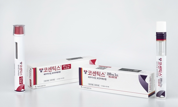 ÇÑÆí, ÄÚ¼¾Æ½½º´Â ¿°Áõ¼º ¸é¿ªÁúȯ¿¡ ÁÖ¿äÇÑ ¿ªÇÒÀ» ÇÏ´Â IL-17A¸¦ Á÷Á¢ÀûÀ¸·Î ¾ïÁ¦ÇÏ´Â ±âÀüÀÇ ¾à¹°·Î, 2015³â 9¿ù óÀ½ ½ÄǰÀǾàǰ¾ÈÀüóÀÇ ½ÂÀÎÀ» ¹Þ¾Æ ÆÇ»ó °Ç¼±, °Ç¼±¼º °üÀý¿°, °Á÷¼º ôÃß¿° µî ÀÚ°¡¸é¿ª ÁúȯÀÇ Ä¡·á¿¡ »ç¿ëµÇ°í ÀÖ´Ù. ÀÌÈÄ 2023³â 12¿ù ½ÄǰÀǾàǰ¾ÈÀüó·ÎºÎÅÍ ¼ºÀΠȯÀÚÀÇ Áߵ-ÁßÁõ È³ó¼º ÇѼ±¿° Ä¡·á·Î ½ÂÀιÞÀ¸¸ç, È³ó¼º ÇѼ±¿° Ä¡·á¿¡¼ »ý¹°ÇÐÀû Á¦Á¦°¡ óÀ½ µîÀåÇÑ ÀÌÈÄ 8³â¿©¸¸¿¡ ½ÂÀÎµÈ »ý¹°ÇÐÀû Á¦Á¦ÀÌÀÚ Ã¹ ÀÎÅÍ·çŲ(IL)-17A ¾ïÁ¦Á¦°¡ µÆ´Ù. ÄÚ¼¾Æ½½º´Â 2015³â ù Ãâ½ÃµÈ ÀÌÈÄ 2025³â 2ºÐ±â±îÁö Áö³ 10³â µ¿¾È Àü ¼¼°èÀûÀ¸·Î 180¸¸ ¸íÀÌ ³Ñ´Â ȯÀÚ¿¡°Ô ó¹æµÆ´Ù.