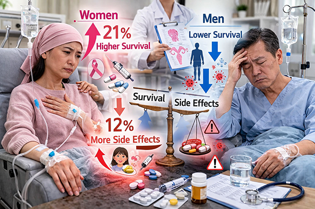 ¿©¼ºÀÌ ³²¼ºº¸´Ù ¾Ï »ýÁ¸À²ÀÌ ³ôÀº ´ë½Å, Ä¡·á °úÁ¤¿¡¼ ´õ ½É°¢ÇÑ ºÎÀÛ¿ëÀ» °ÞÀ» °¡´É¼ºÀÌ Å©´Ù´Â ¿¬±¸ °á°ú°¡ ³ª¿Ô´Ù.